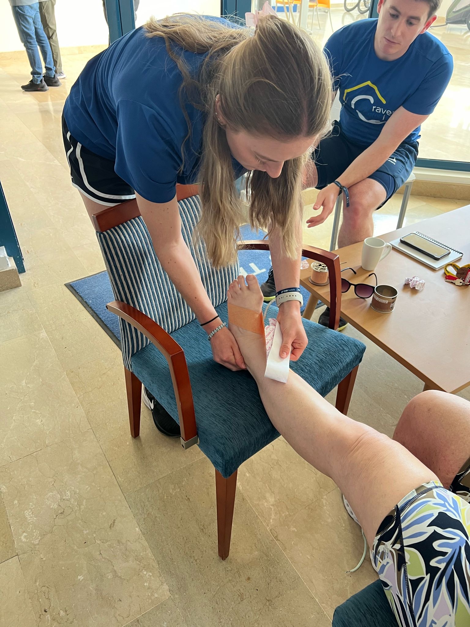 Physiotherapy on camp is covered by students from either Keele or Liverpool universities, for which Barry and Lyndsay are clinical educators. The support they provide can range from assessment and treatment to rehabilitation that is incorporated into camp activities. Clinical care is combined with specific activities such as strength work in the gym to aid in forward progress.